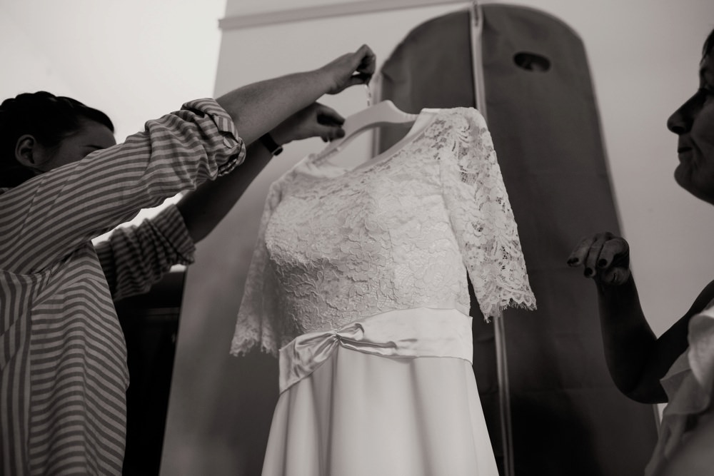 “I looked in a lot of wedding dress shops and wanted a very specific type of dress to suit my figure. I ended up making quite a lot of alterations to the dress, adding sleeves and changing the back – to make it look how I’d envisioned. The Wedding Dress Shop were so accommodating, letting me make the changes I needed and suggested lots of helpful details.