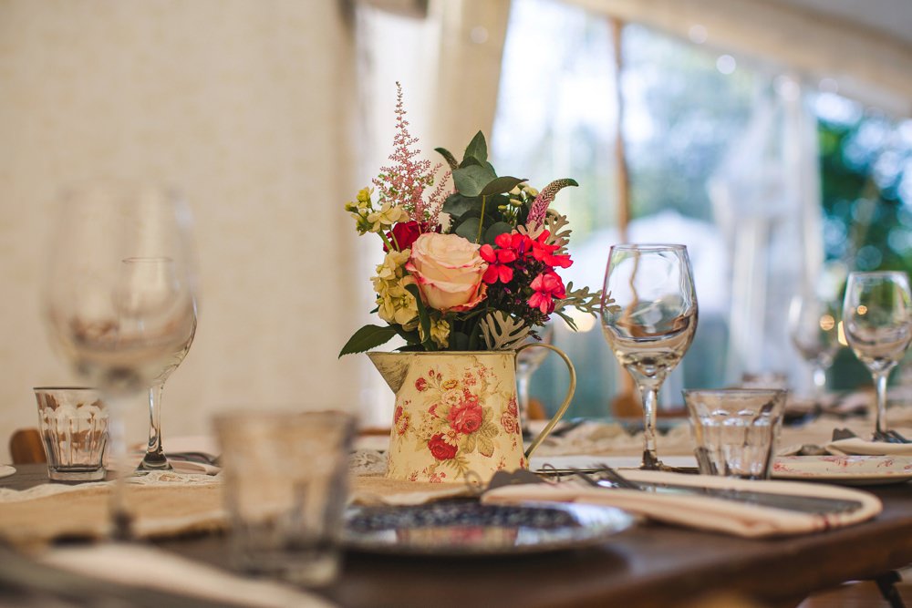 The venue we chose inspired the main theme we went for which was an “English Country Wedding” with bunting, flowers, rustic table settings and vintage touches, using the natural setting of The Perch which already has some decorations.